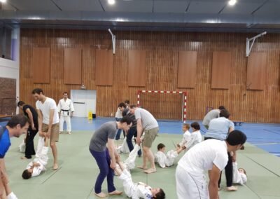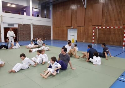 - L'approche de l'opposition à travers les premiers randoris au sol (combats d'entraînement éducatifs).